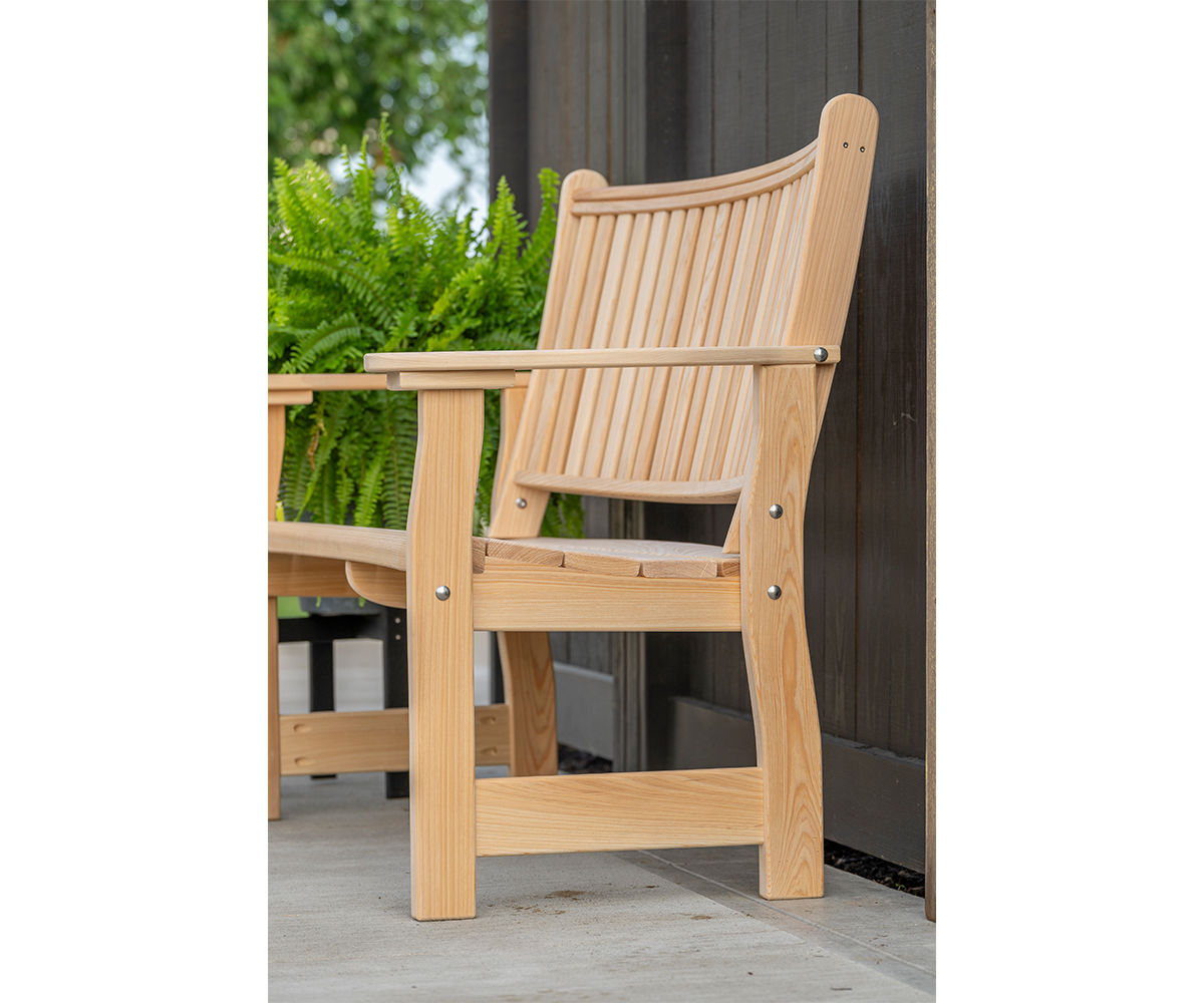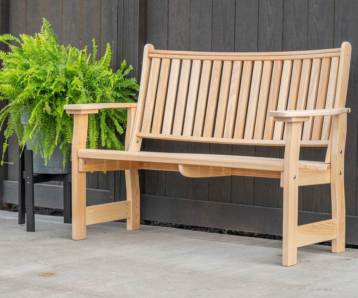 • A neat gently curvedb bench designed for communication