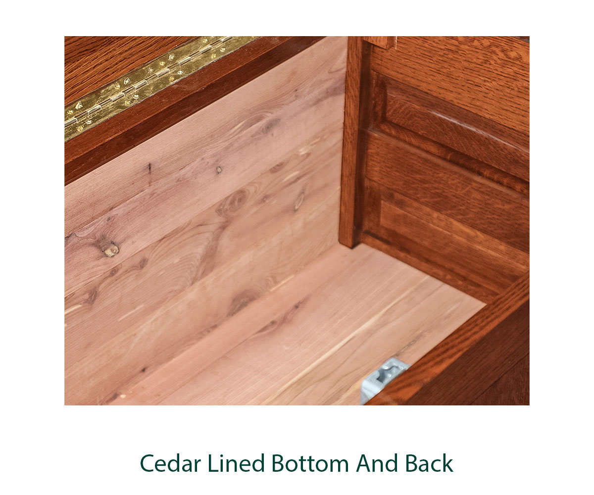 • Cedar lined bottom and back inside the chest