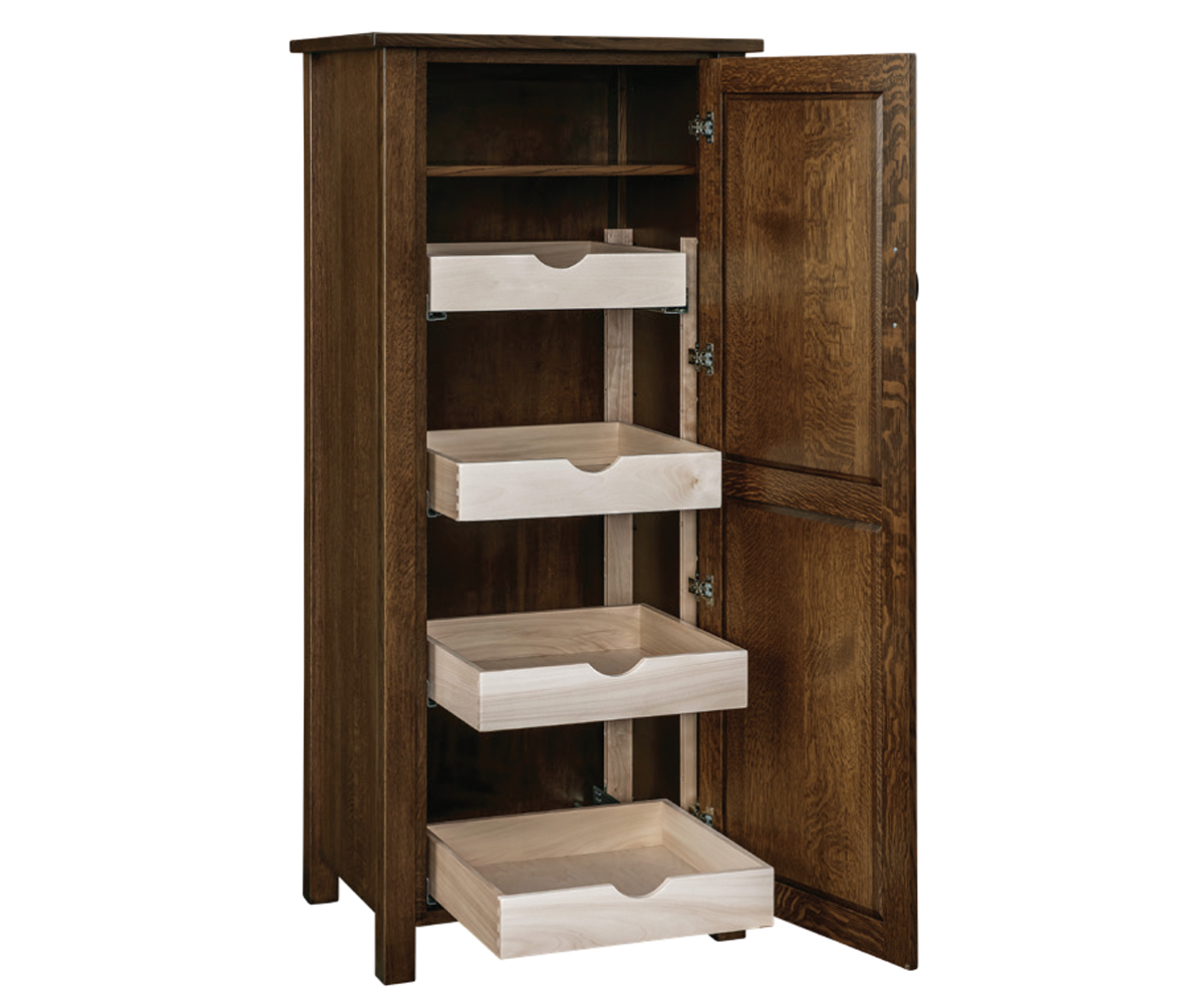 Features: • Pullout shelves behind the long doors