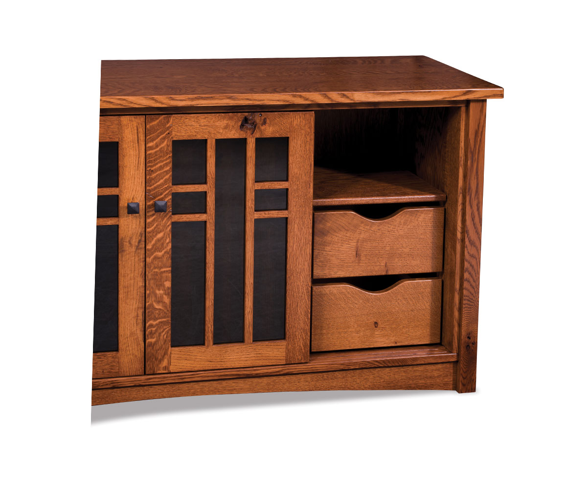 • Two hidden drawers and shelf behind the right door