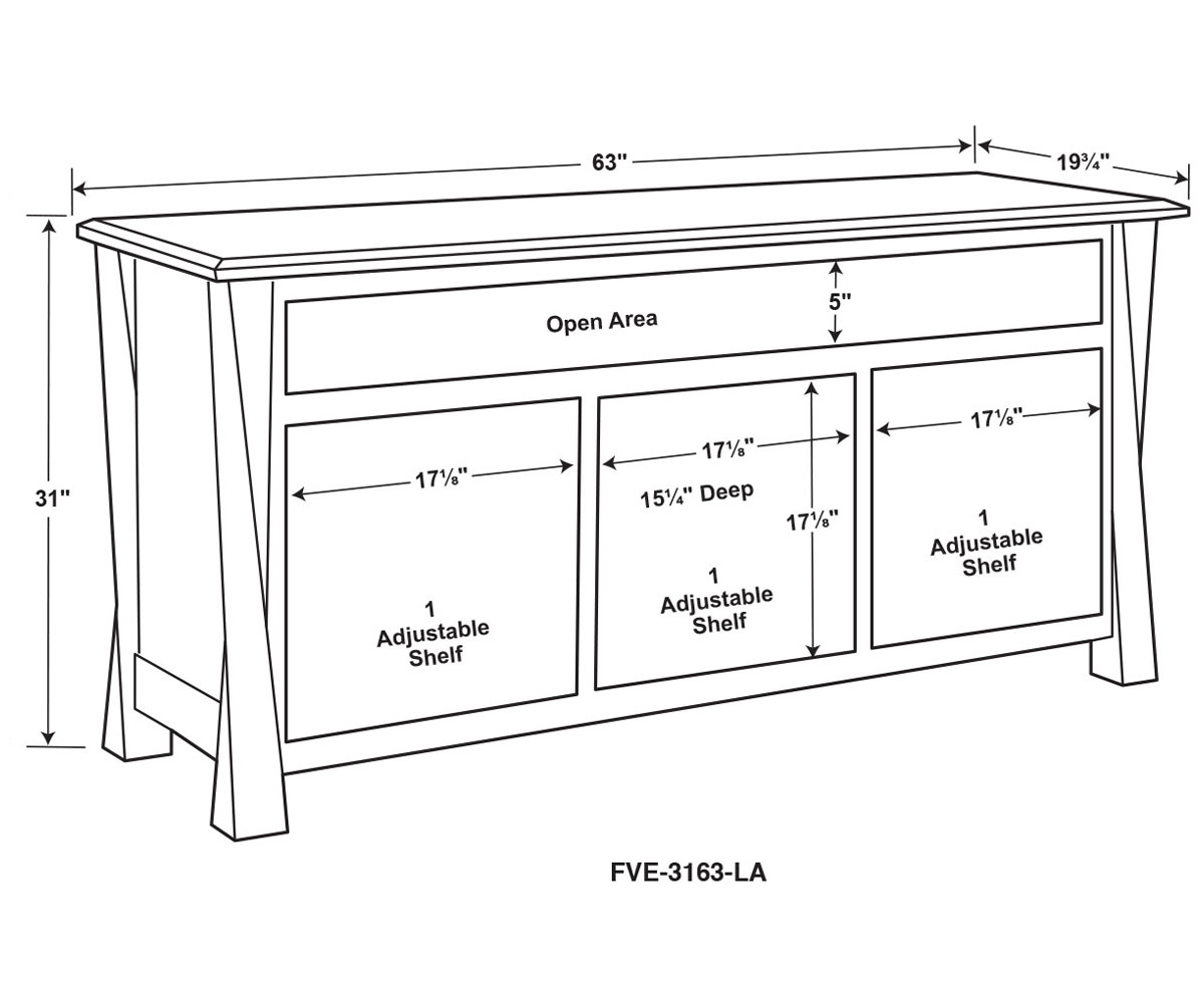 Dimensions: 63″W x 19¾”D x 31″H