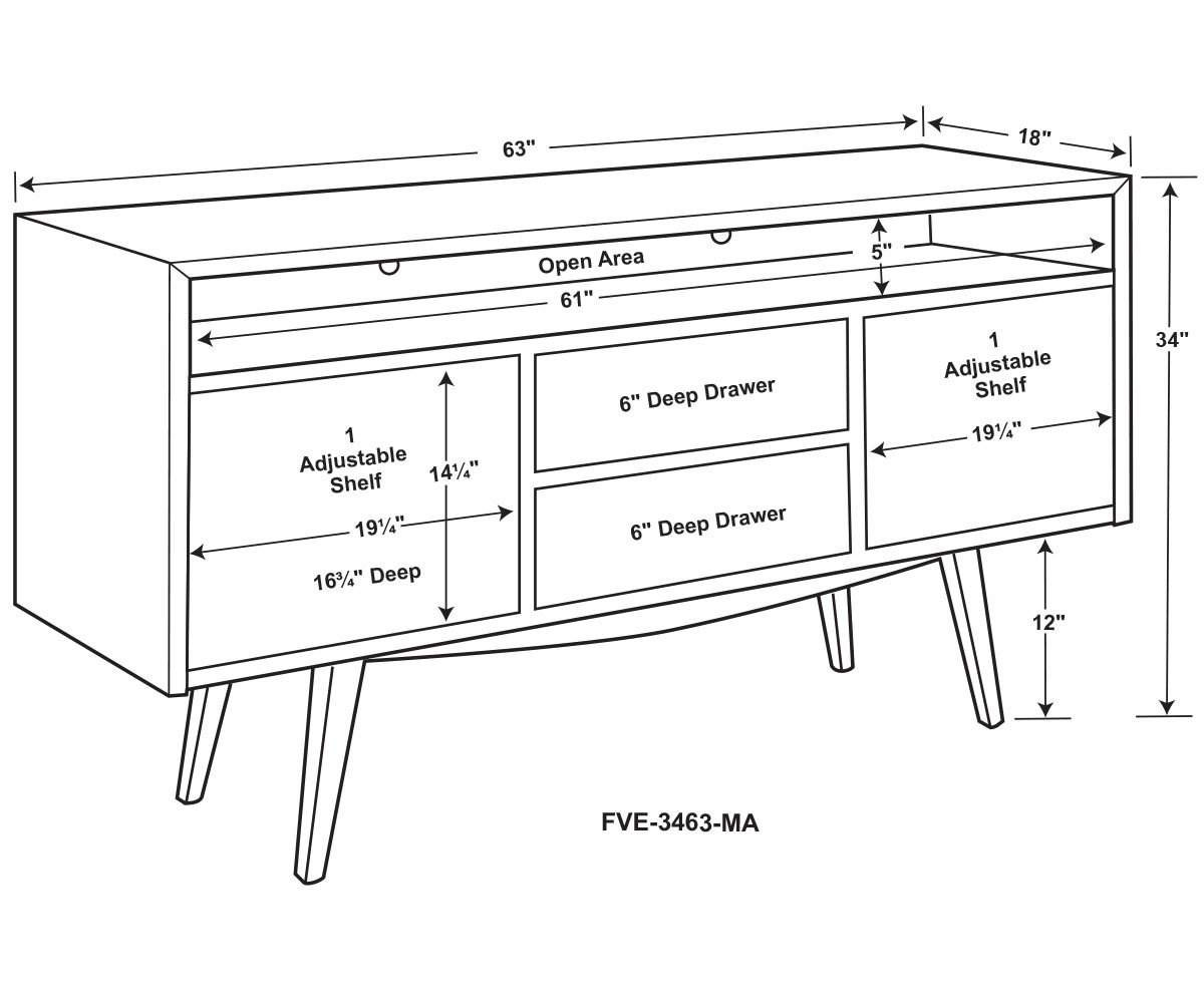 Dimensions: 63″W x 18″D x 34″H
