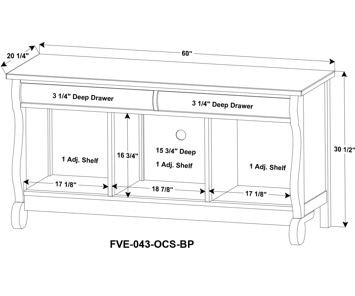 Dimensions: 60″W x 20¼”D x 30½”H