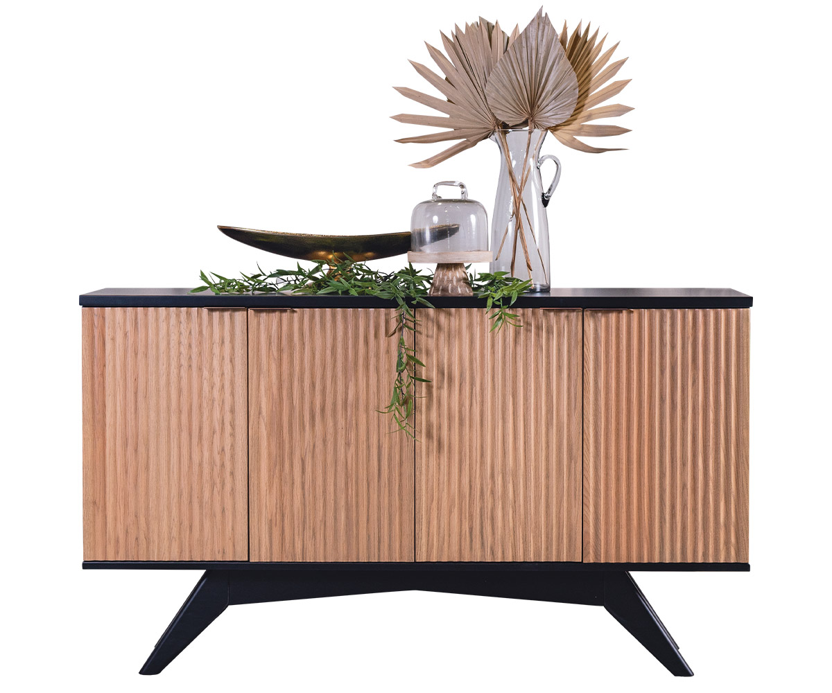 Features: • Fluted door detail • One adjustable shelf behind each set of doors